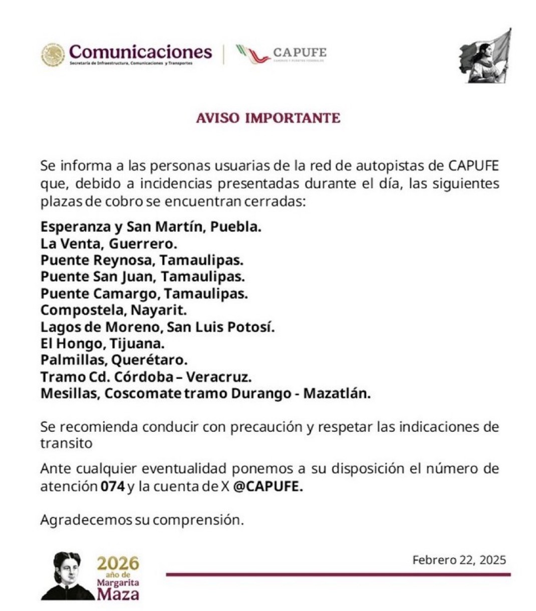 Ciudad de México, 22 de febrero de 2025. — Caminos y Puentes Federales […]