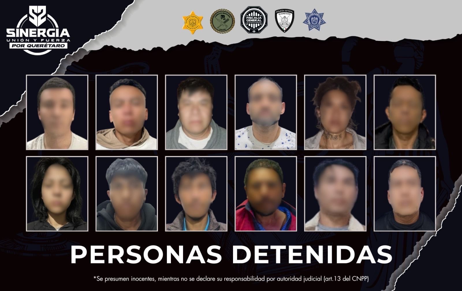 Las acciones fueron encabezadas por personal ministerial y elementos de la Policía de Investigación del Delito, con el apoyo de Ejército Mexicano, Policía Estatal (POES) y policías municipales de Querétaro y Corregidora, en un operativo coordinado que forma parte de los resultados que continúa generando la estrategia SINERGIA por Querétaro para combatir los delitos y fortalecer la seguridad en la entidad.